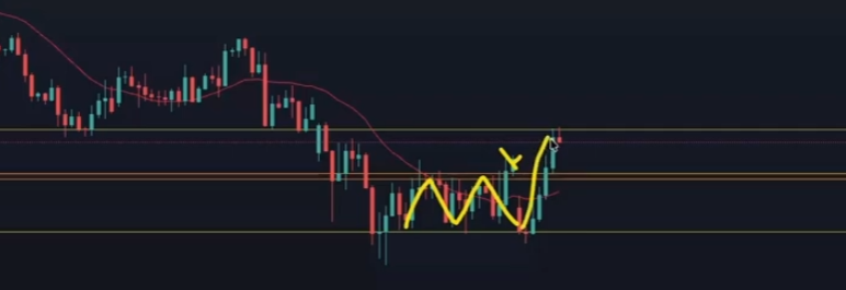 1個前の高値は無視して、1時間足などを見て水平線を引く