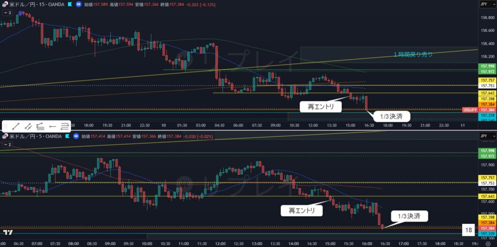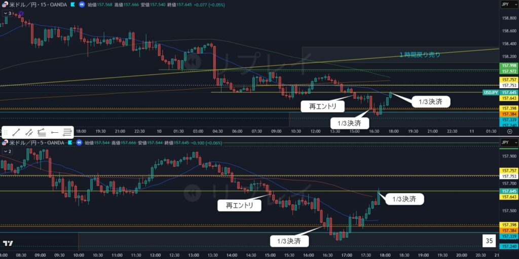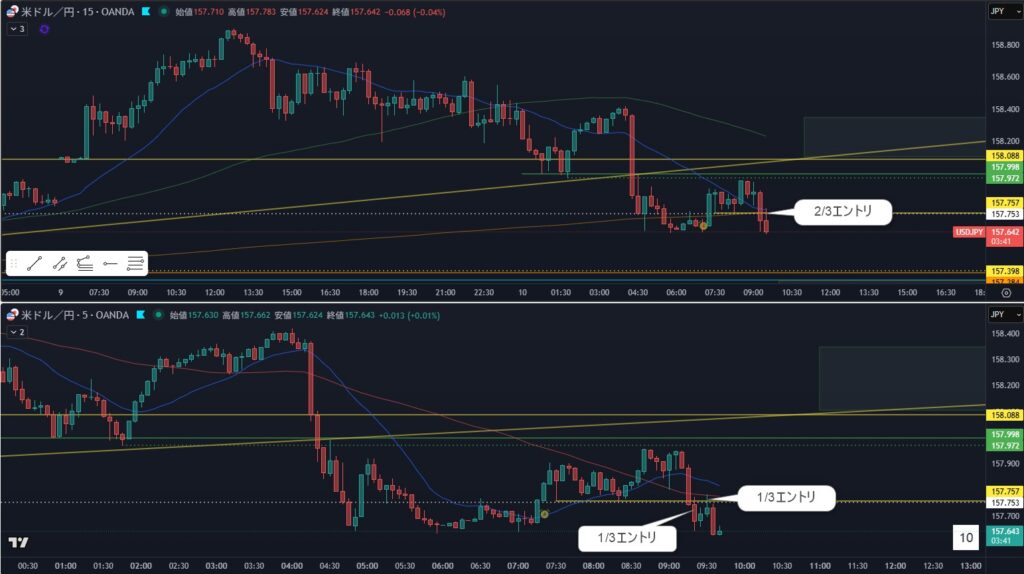 5分足の小さな確認のようなものを抜けてエントリ