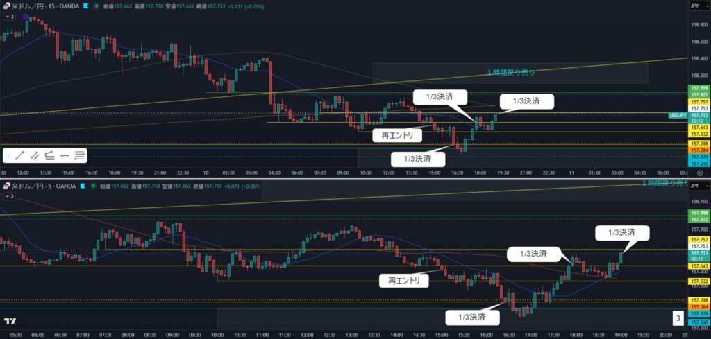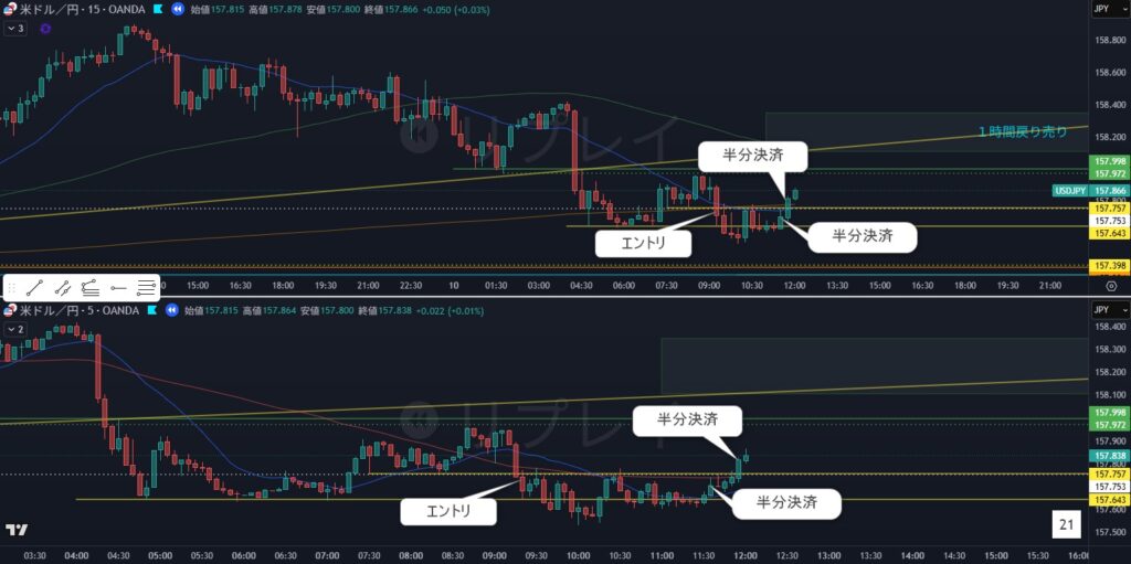 11:35 半分決済 +10pips 割って+5pips