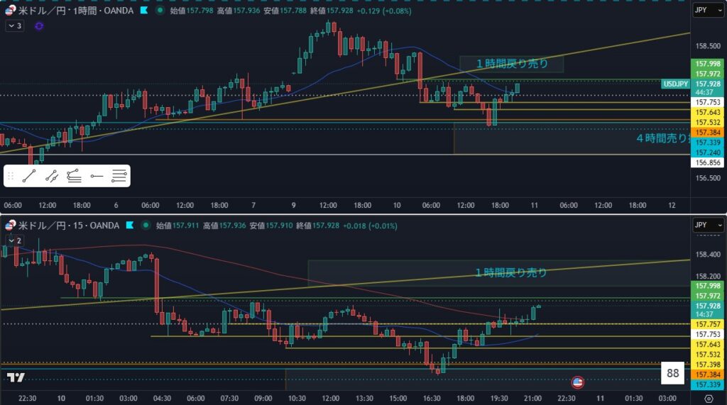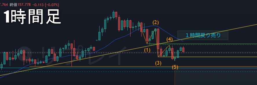 このカウントだった人は、4時間1波継続の1時間戻り売りを狙っていける