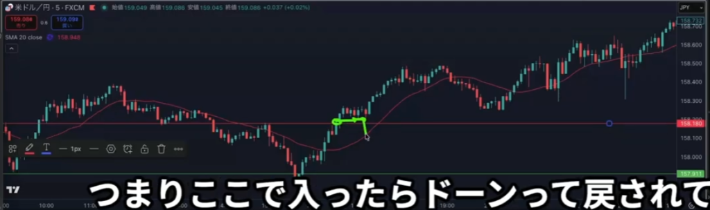 斜めで入った場合、損切幅が広くなりやすい