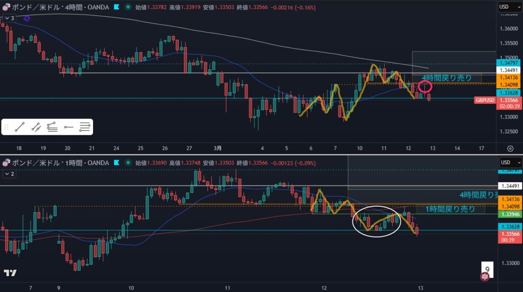 - 狙い:4時間戻り売り