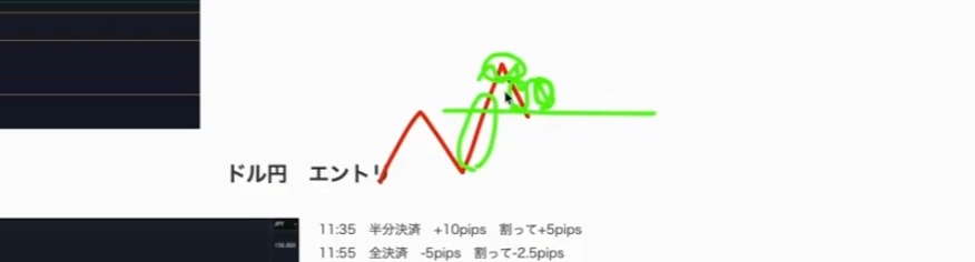 - エントリと決済は同じ。このライン割ったら決済だなって思ってて、割ったと思って決済したらヒゲで戻される