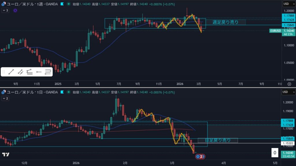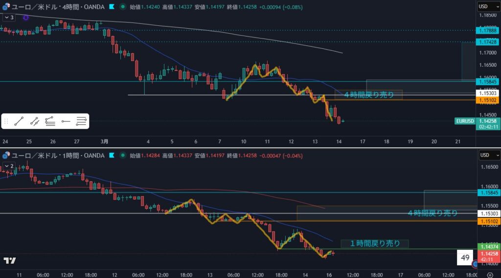 1時間 方向下 戻しを付けている