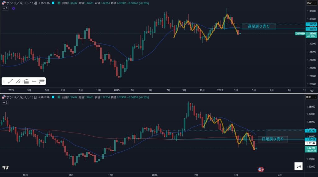 • オレンジラインの上に戻り売り勢力