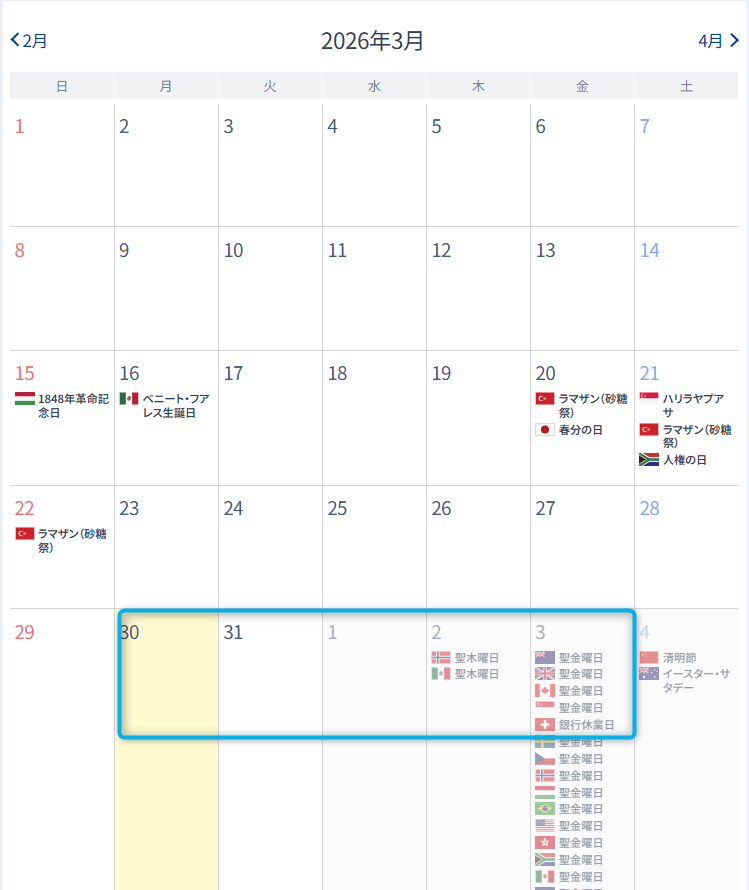 今週の指標・休場