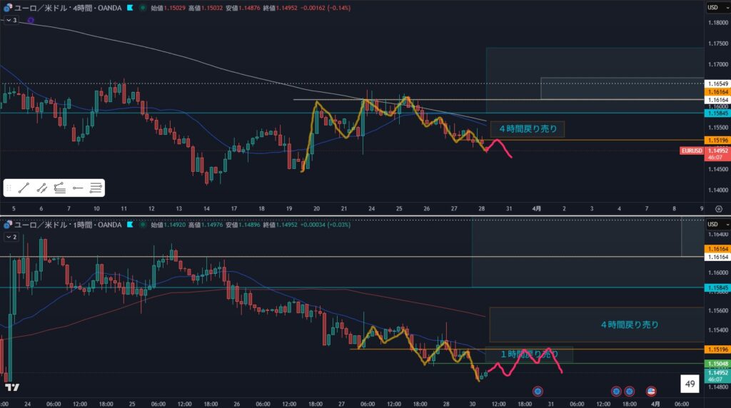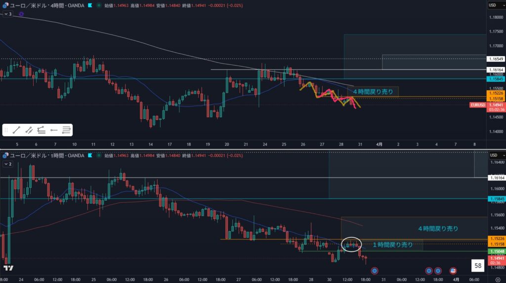 - 狙い:4時間戻り売り戻り待ち