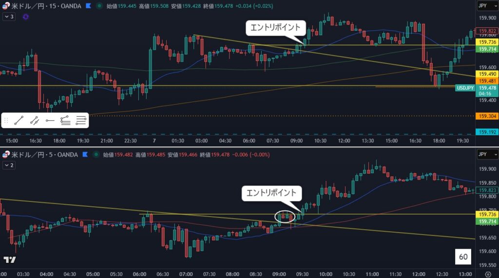 5分足を見てなくて「ここだよね」には気づいていなかった