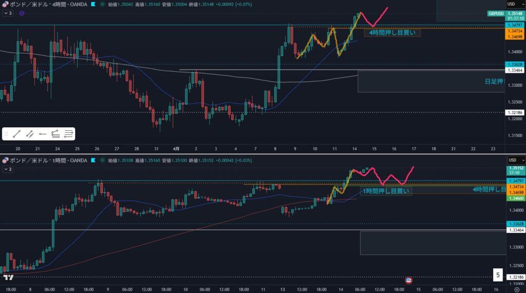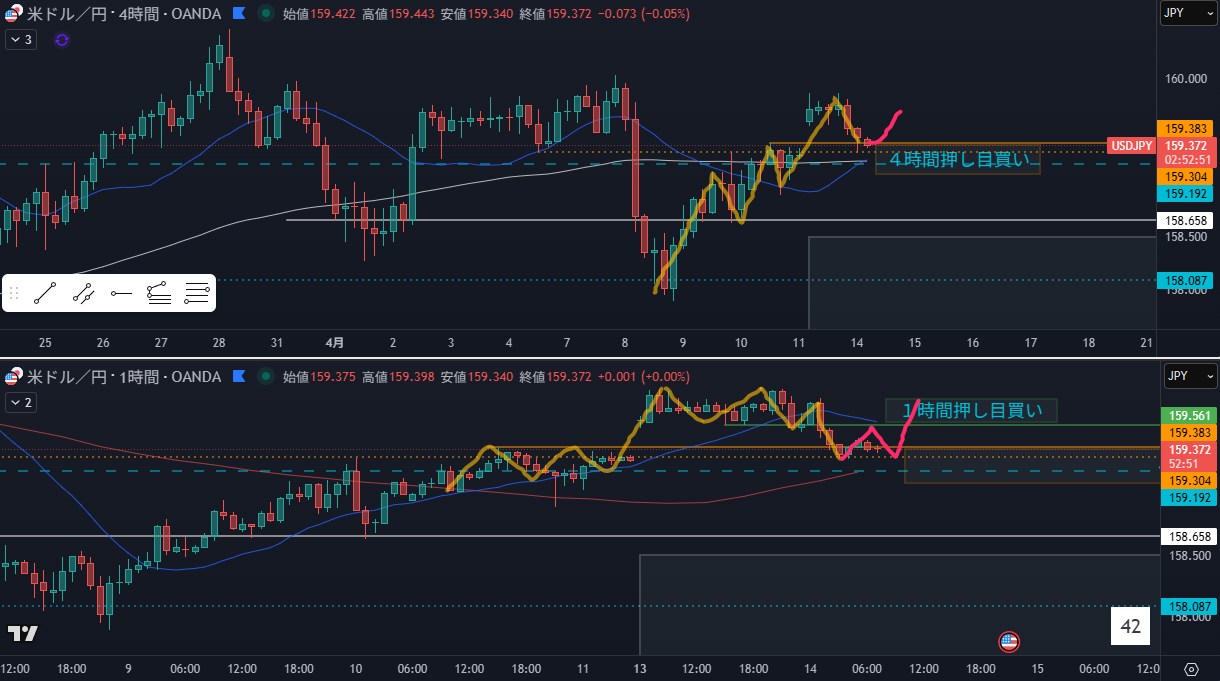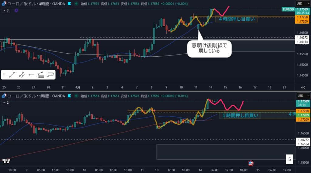 - 4時間の押し目買い狙い