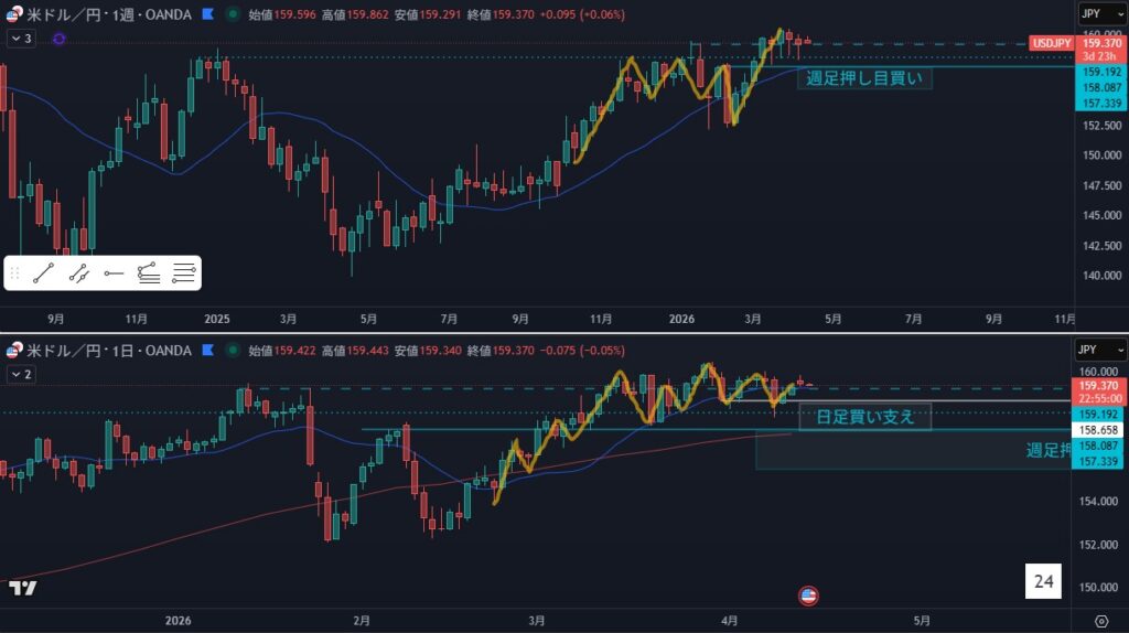 - オレンジラインの下に押し目買い勢力