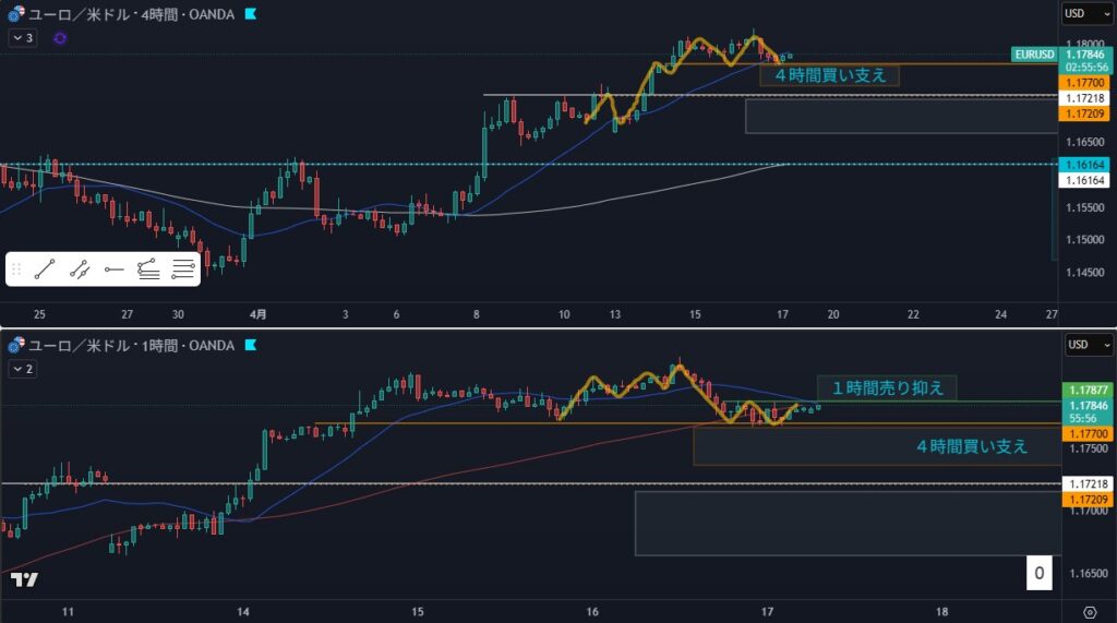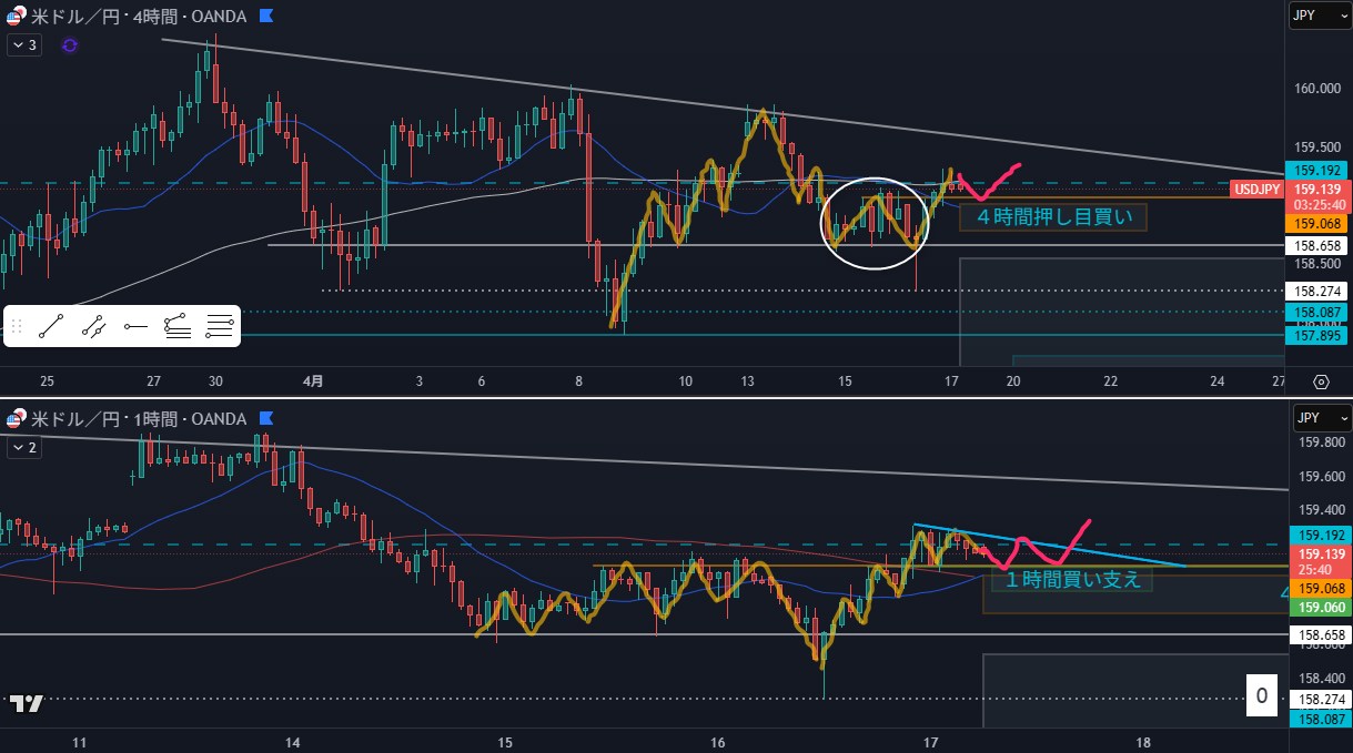 - 狙い:4時間押し目買い