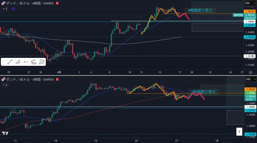 - 狙い:4時間戻り売り