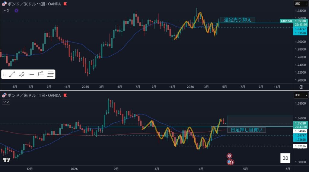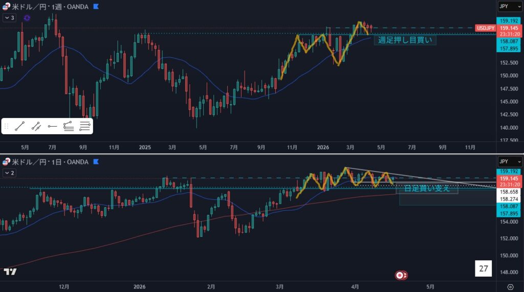 - オレンジラインの下に押し目買い勢力