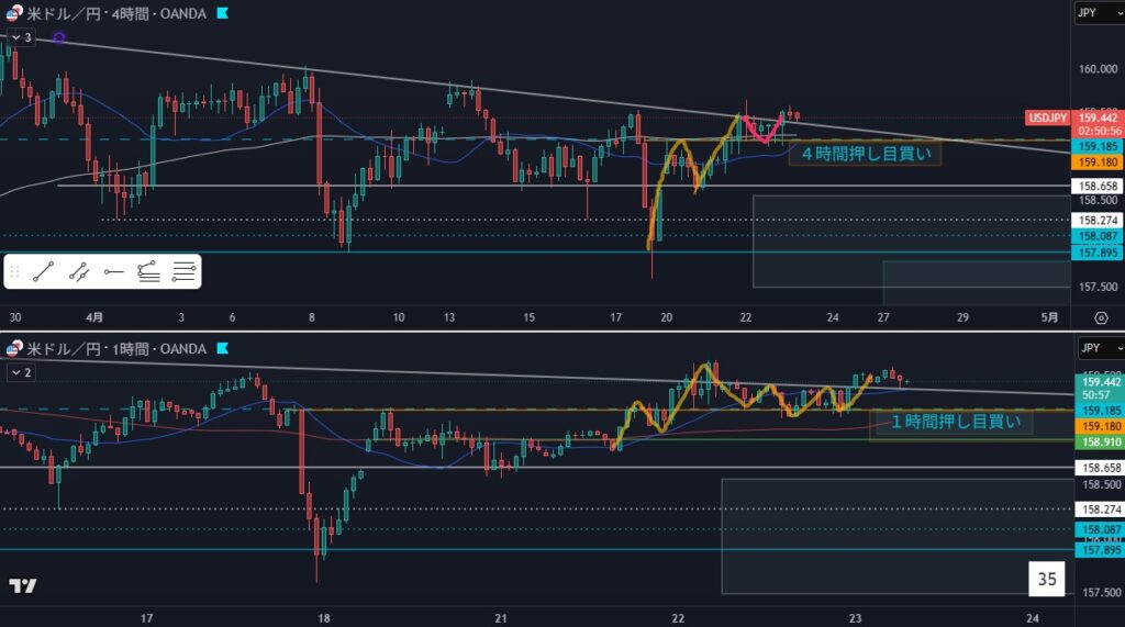 - 狙い:4時間押し目買い
